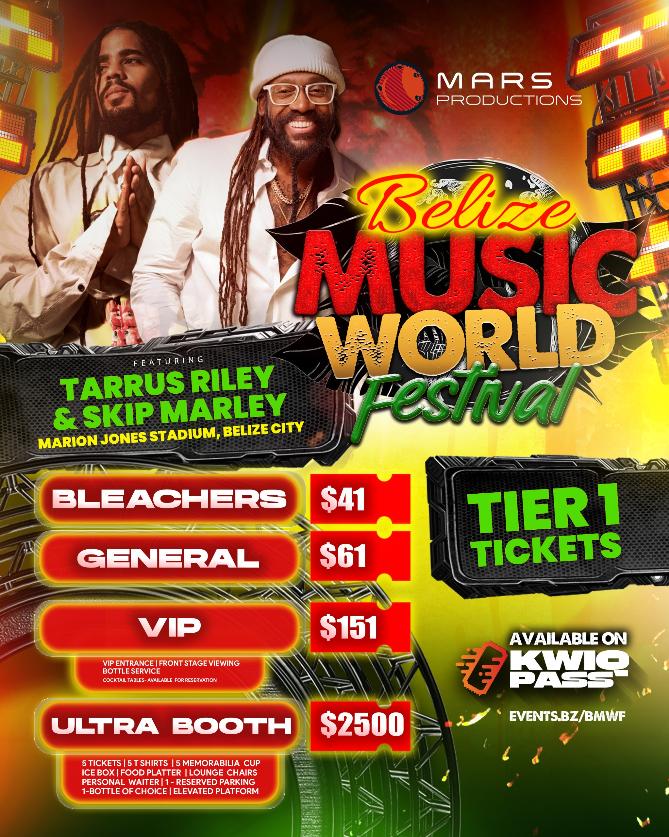 They say, You never forget your first time! So we will make sure that our 1st Annual “Belize Music World Festival” will be an absolutely Unbelizeable Experience. Join us at the Marion Jones Stadium for an Amazing Evening of great music with Tarrus Riley, Skip Marley, Pen Cayetano, and J. Cas. Enjoy delicious food, icy cold beverages, and this joyous celebration of Life, Love and Good Vibes Only in that beautiful little paradise we call Belize. It all happens Saturday, April 25th, 8pm to 1am, in Belize City. And if you’re anyplace other than here on April 25th then my brothers and sisters you’re in the wrong place. Come join us in paradise for the Belize Music World Festival. Where We, guarantee You, it’s going to be Unbelizeable!